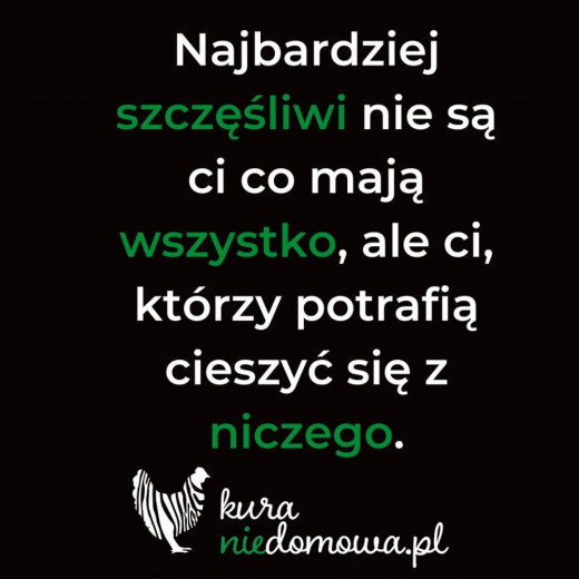 W kurniku jest ciepło, smacznie, na głowę nie leci i zagląda do nas niemal codziennie słońce. Jak nie ma tego prawdziwego, to jest to malowane przez dziewuszki. W trudnościach widzę siłę. Podczas sztormu czuję wiatr w skrzydłach.