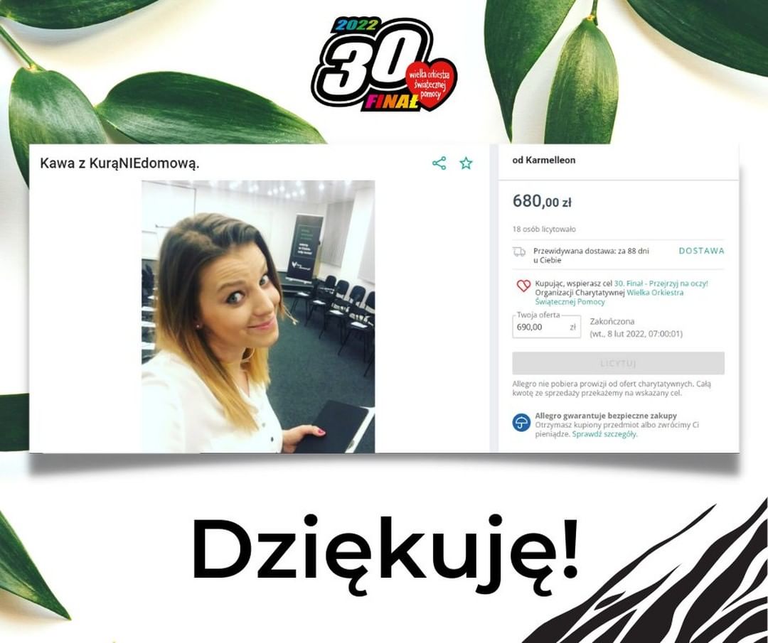 Niesamowite‼ Tyle mogę powiedzieć o aukcji dla WOŚP ❤️Całkiem spontaniczna decyzja przyniosła nieoczekiwane rezultaty. Przyznam Ci się, że zupełnie nie spodziewałam się zainteresowania. Ucieszył mnie jednak bardzo fakt, jak było nieco na koncie aukcji, bo to zawsze miło, a przede wszystkim cel jest szczytny! Sama prywatnie wsparłam Fundację jak co roku.